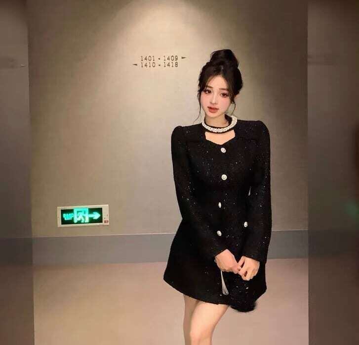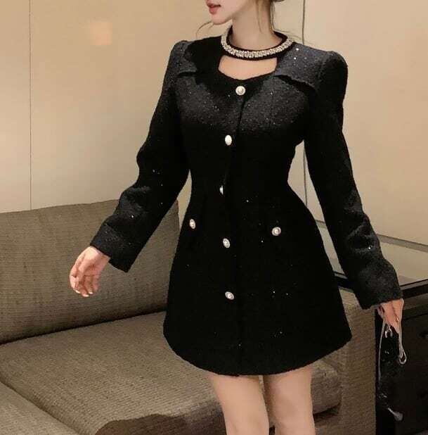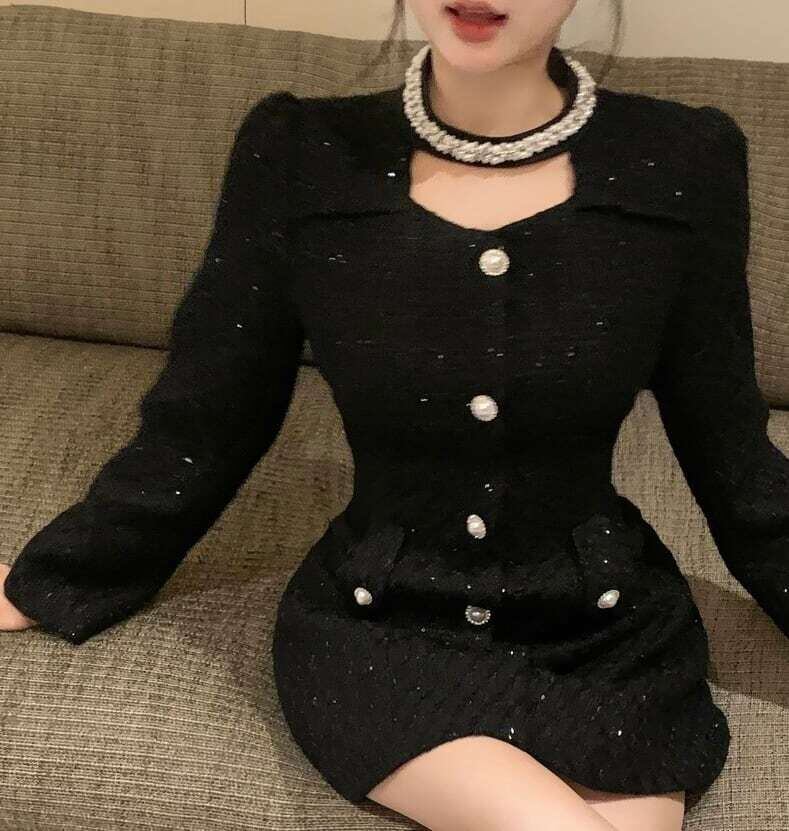 ミニ丈ワンピース パールモチーフ パールネック お呼ばれ ガーリー E724