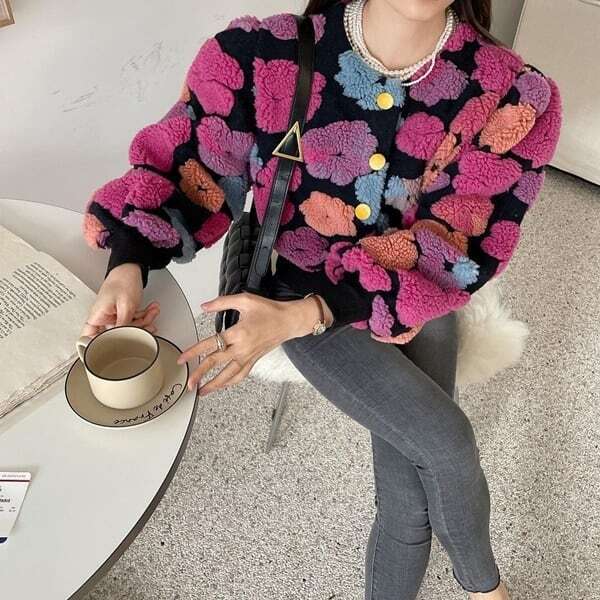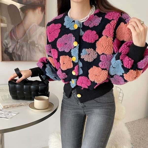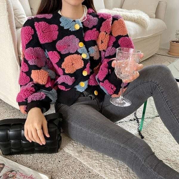 フラワーモチーフカーディガン ニット ビビット ガーリー E683