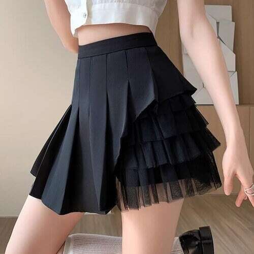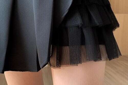 チュールドッキングスカート プリーツスカート ミニ丈 ガーリー E776