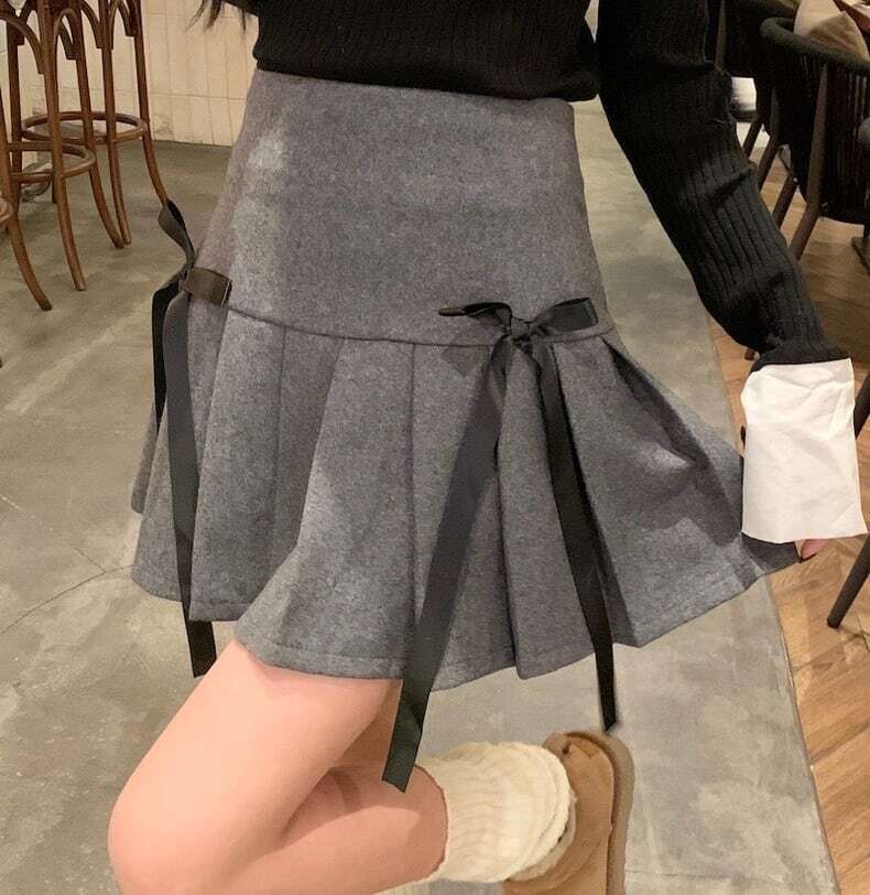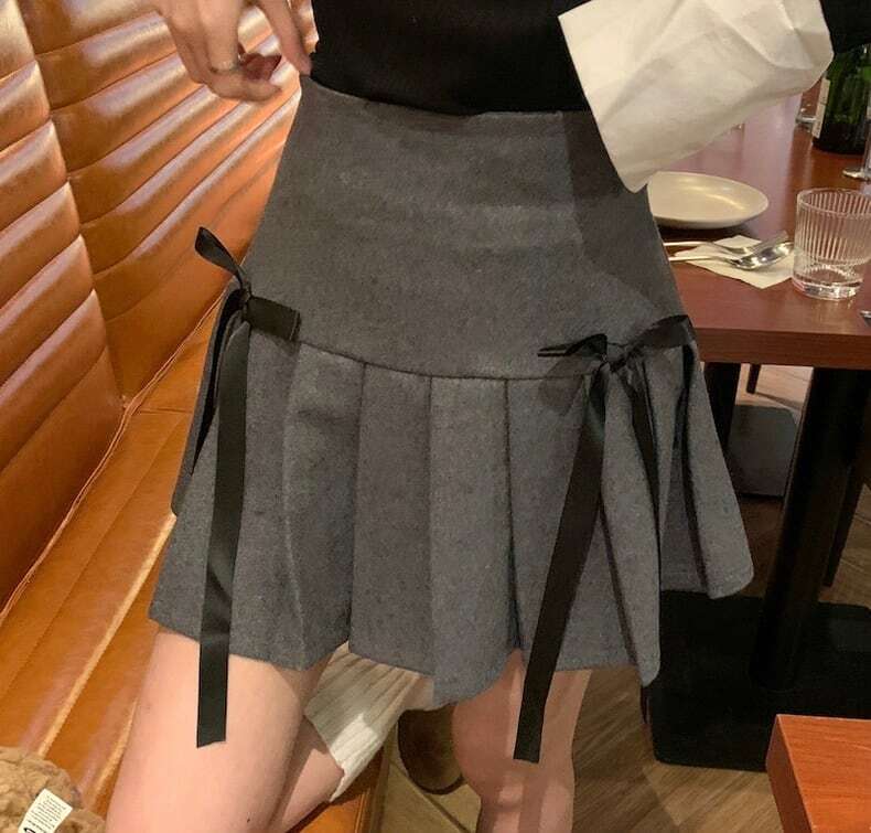 プリーツスカート リボンモチーフスカート ミニ丈 ガーリー E765