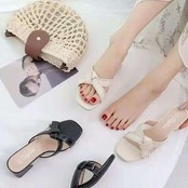 リボンモチーフサンダル チャンキーヒール エレガント E273