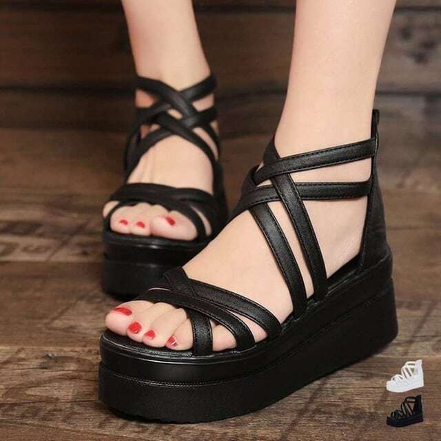 クロスサンダル 厚底 ウエッジソール エレガント E270