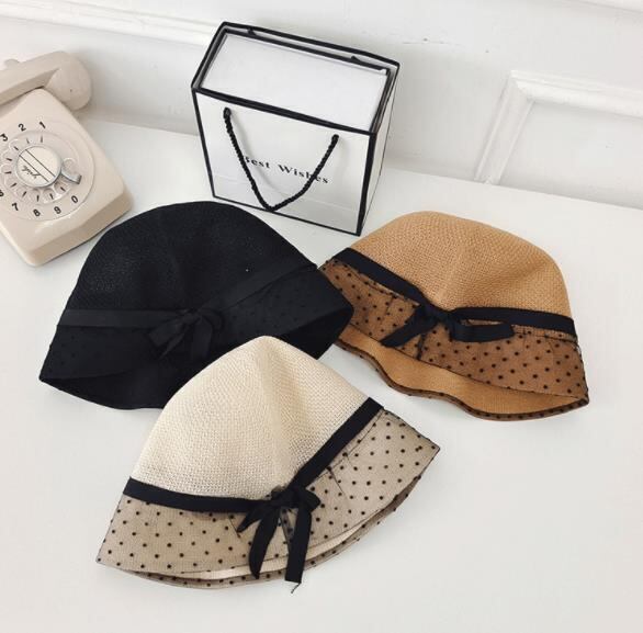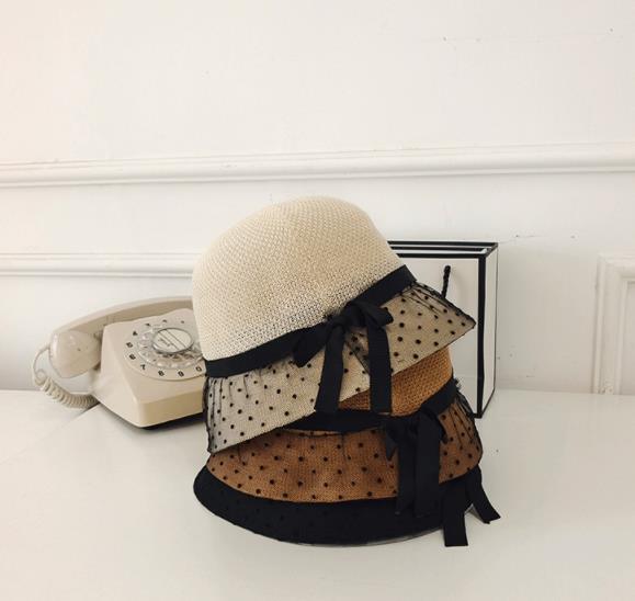 ストローハット 麦わら帽子 紫外線対策 ハット ドット柄 D578